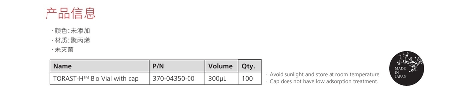 | 在分析低浓度样品或稀少样品时,TORAST-H Bio Vial 是一个理想的选择。该系列样品瓶采用特殊的表面钝化工艺,有效的避免疏水 性物质及离子类物质被样品瓶内表面吸附。 | ![]() |