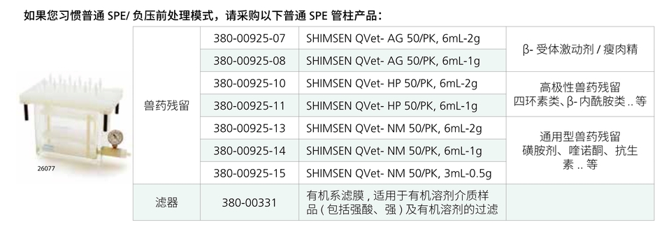 ● 如果您习惯常规 SPE/ 负压前处理模式,请采购以下普通 SPE 管柱产品。
