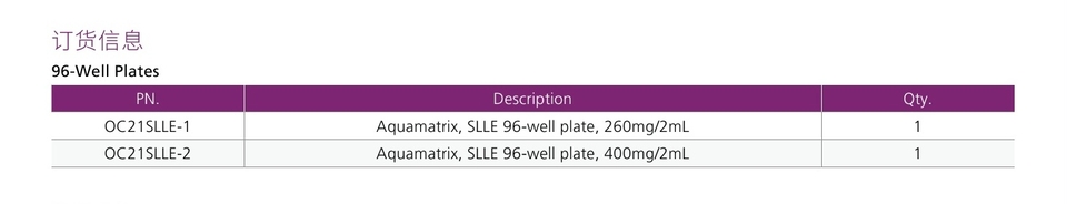 96 孔 SLLE- 固相支撑液液萃取板产品信息: