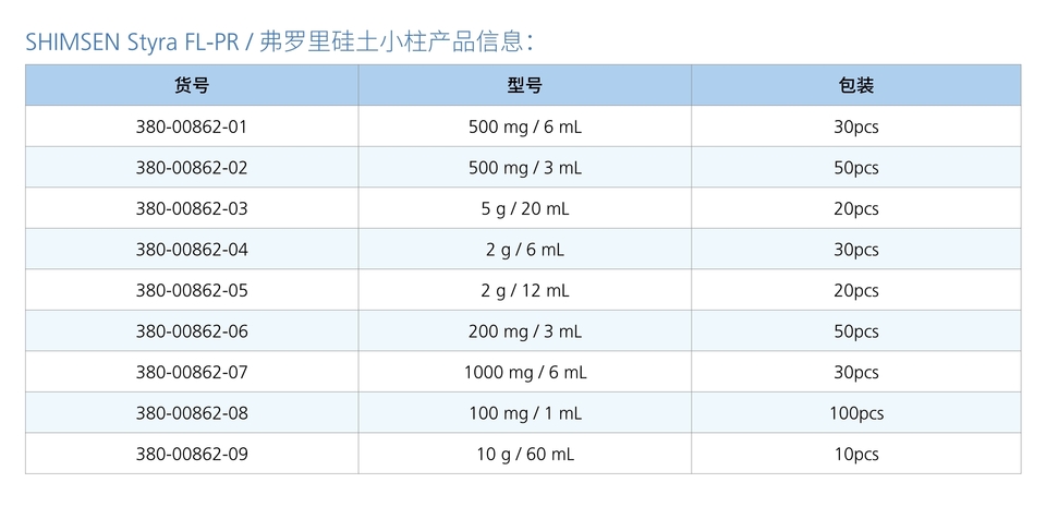 岛津|shimadzu|SHIMSEN Styra FL-PR 2g/6mL 30pcs|货号 380-00862-04|固相萃取柱|2g/6mL, 30支/盒