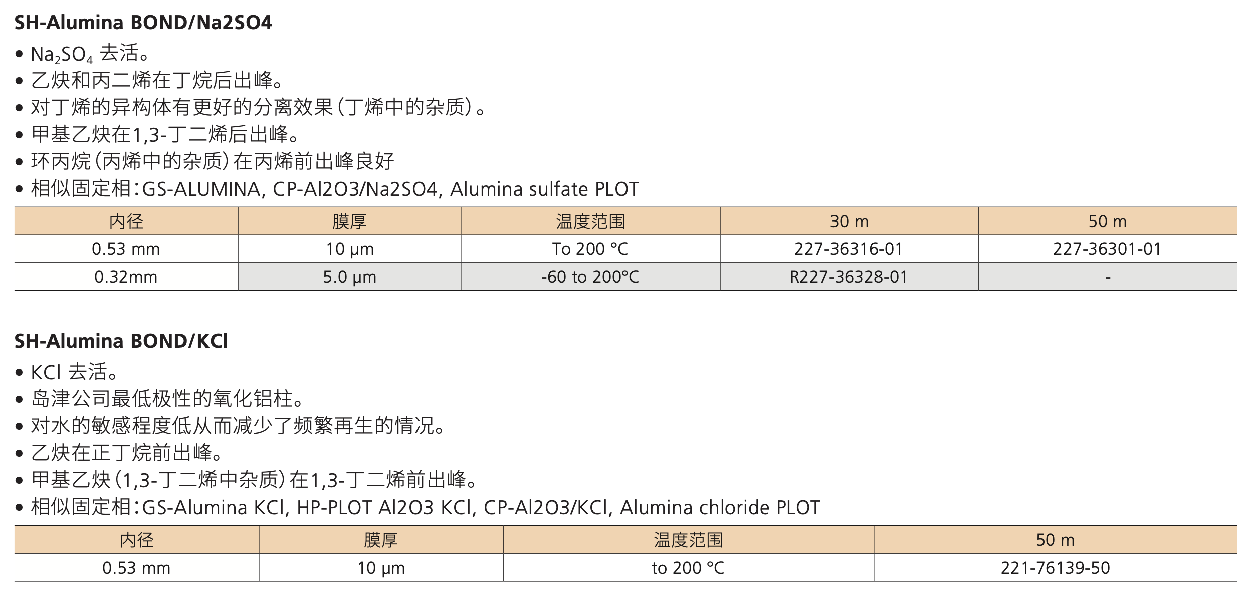 • 特异化的前处理适当降低氧化铝固定相活性,以提高极性不饱和烃类的响应 (例如二烯烃) 和色谱柱的灵敏度以确保良好的线性以及准确的定量分析。
