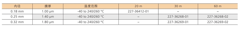 • 用于 GCMS 分析挥发性有机污染物的专用柱,例如 TO-15、TMS、EPA 8260 方法。
