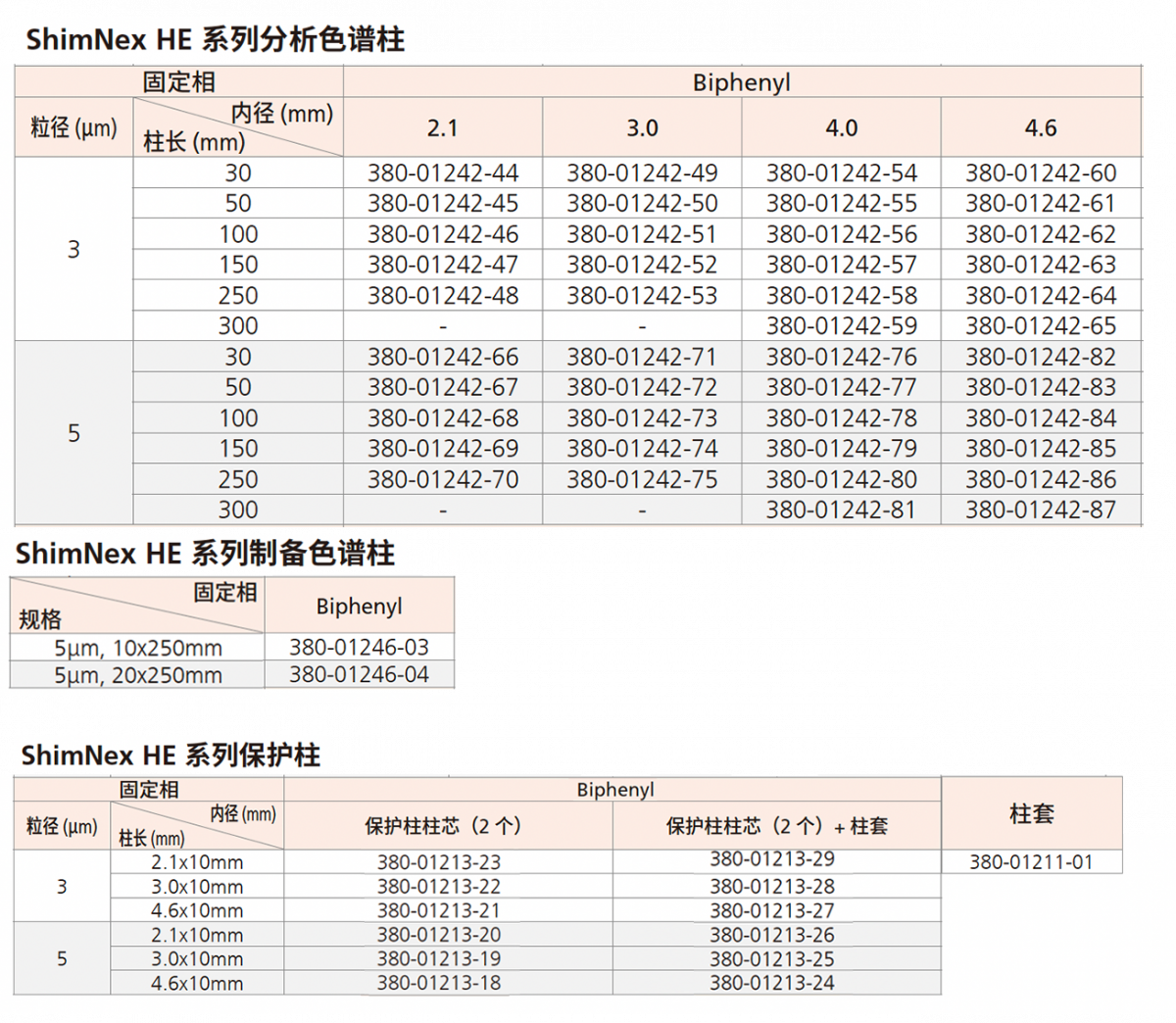 ShimNex HE 系列由于填料粒径均一、硅胶表面参数的优化设计,在保证分离度的前提下,化合物洗脱更迅速。具有高分析效率、高稳定性等特点。该系列囊括了多达 20 种不同的键合相,可满足不同样品对选择性的复杂要求。包括有异丁基侧链保护的 ShimNex HE C18-A、C8-A;兼具 C18 和苯环选择性优势的 C18-Ph;可用于反相、正相分离模式的 PFPP、CN 固定相等,提供了灵活的方法开发选择性,轻松应对各种分离难题。