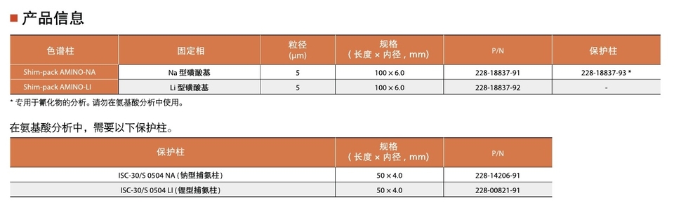 Shim-pack Amino 系列使用聚苯乙烯填料作为载体,利用电荷和疏水作用力,是分析氨基酸的理想选择。