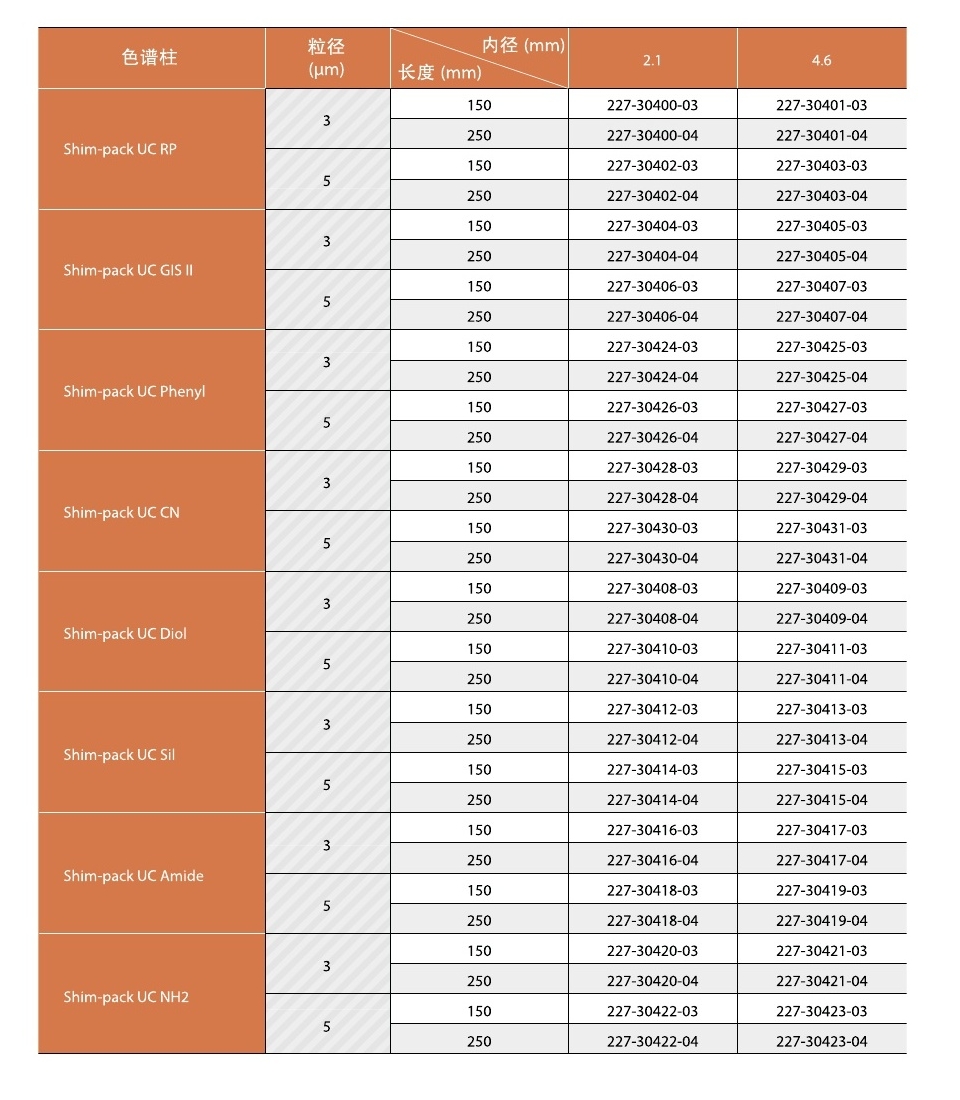 当使用 Nexera UC 超临界流体色谱系统进行分析时,由于样品在流动相中的扩散速度与液相色谱相比较高,所以根据所用色谱柱的类型的不同,分离行为会发生明显变化。Shim-pack UC 系列涉及各种固定相,适用于各种化合物的分析。