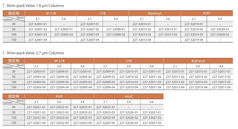 岛津 Shim-pack Velox 系列实心核颗粒色谱柱,专为更大程度发挥LC分离效率而设计,任何LC平台上均可获得更高分离度,更快分析结果。