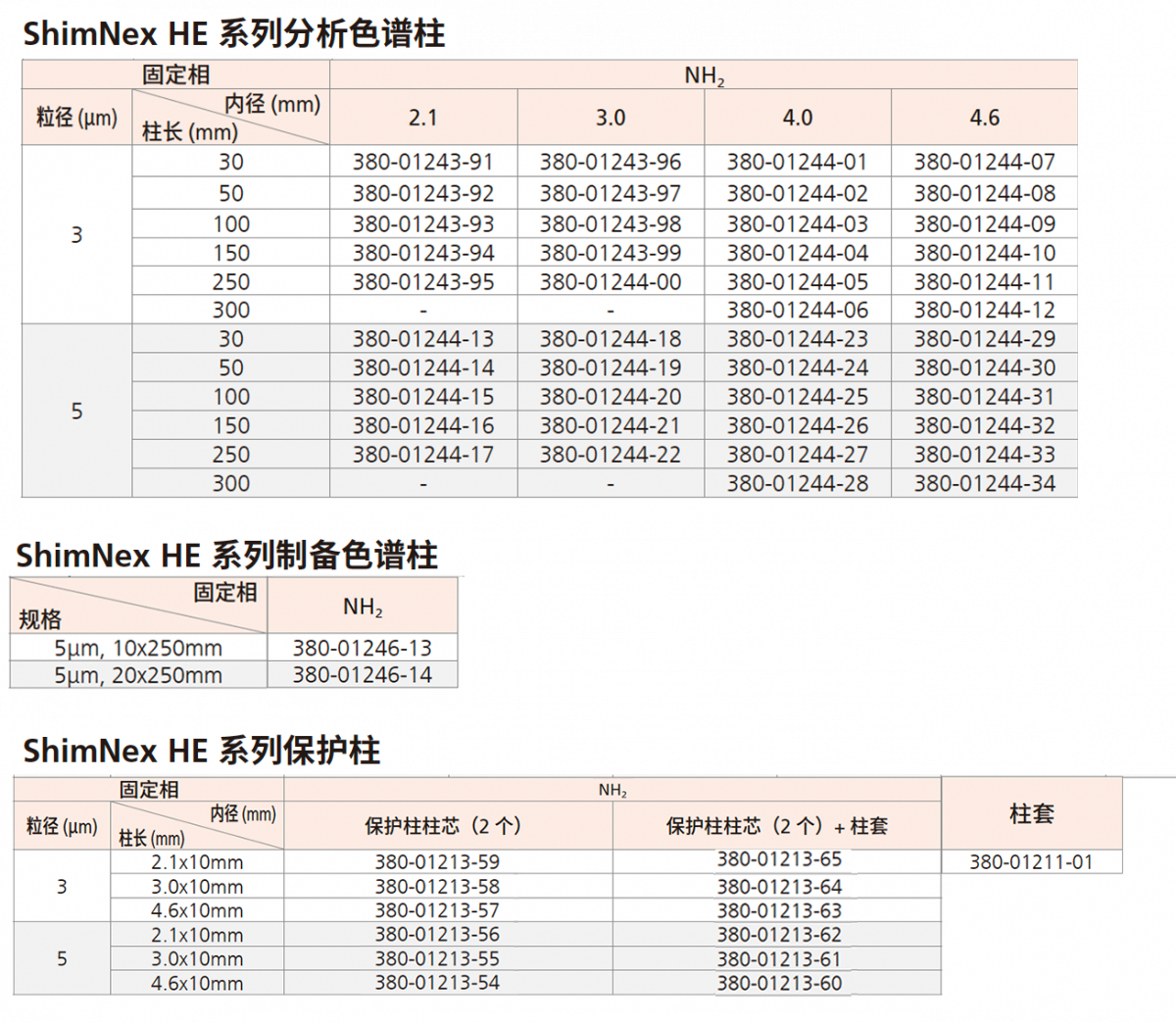 ShimNex HE (G) NH2 系列保护柱>