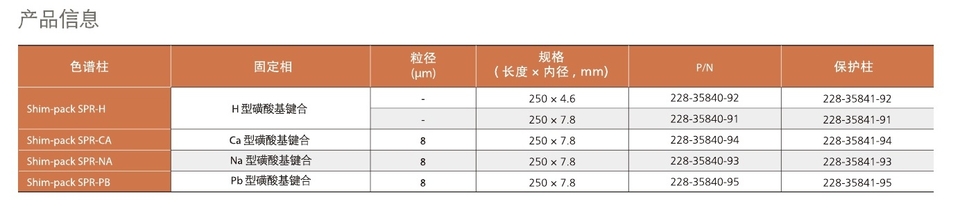 Shim-pack SPR 系列用于分析中性至弱酸性亲水性化合物,是分析有机酸化合物的短链脂肪酸,羟基羧酸和酮羧酸以及三糖或以下的糖和糖 醇的理想选择。