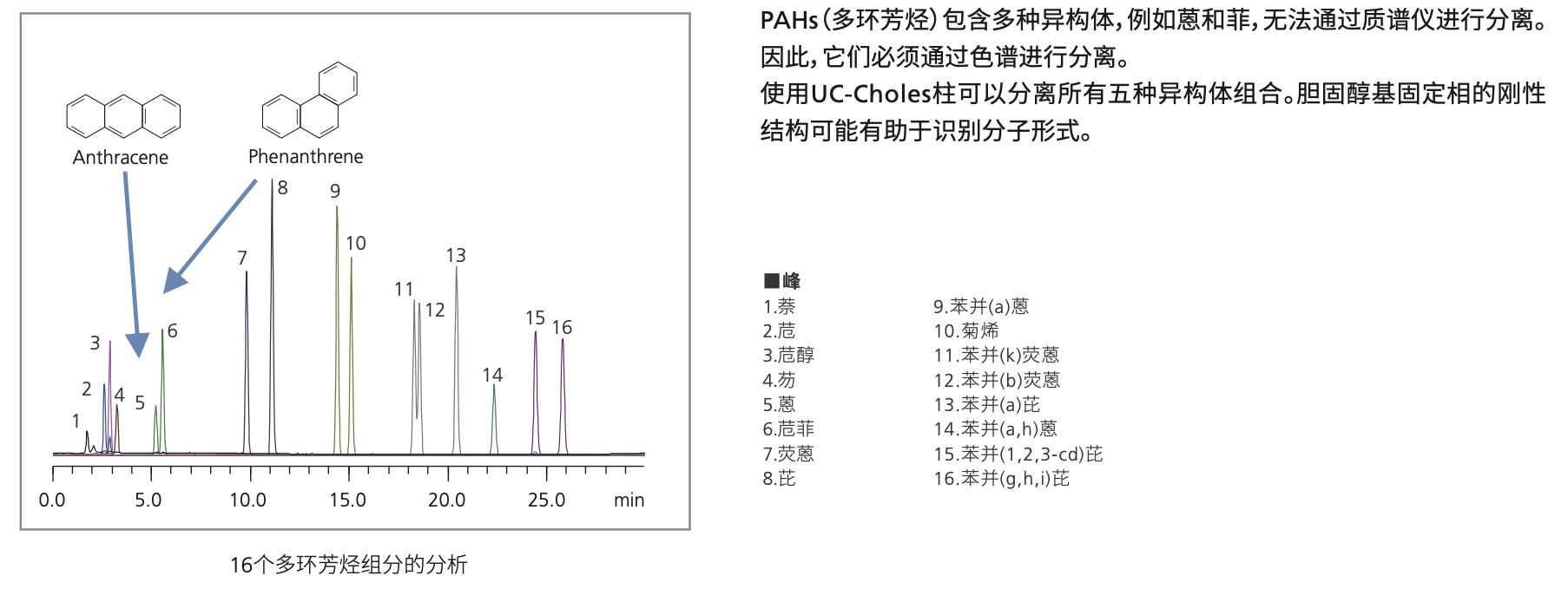 使用UC-Choles柱分离多环芳烃(PAH)的异构体