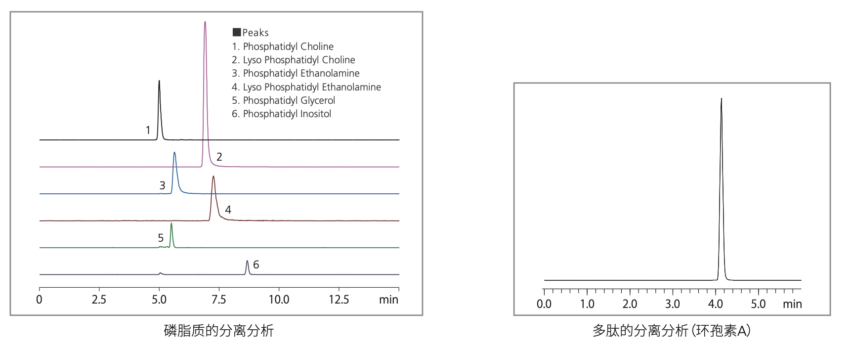 通过具有类似修饰剂参数的分子种类分离磷脂,必须使用具有ODS基固定相的柱,如Shim-pack UC-GIS II。