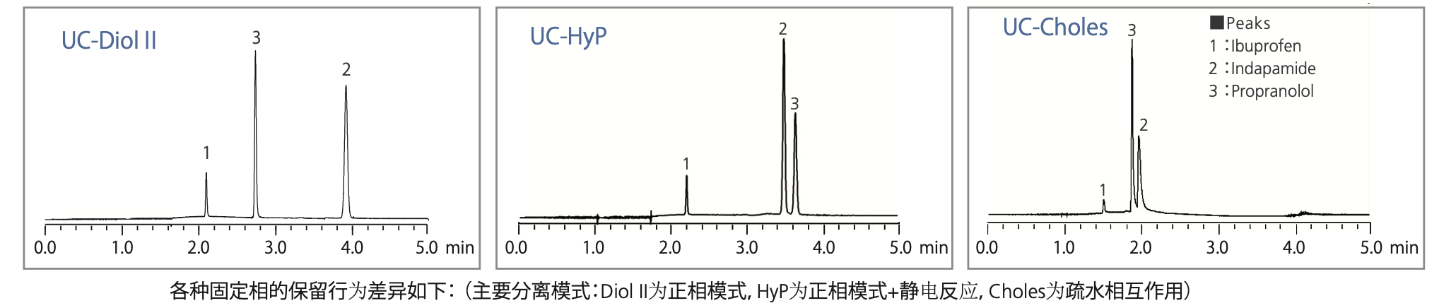 Shim-pack UC 不同色谱柱的保留行为