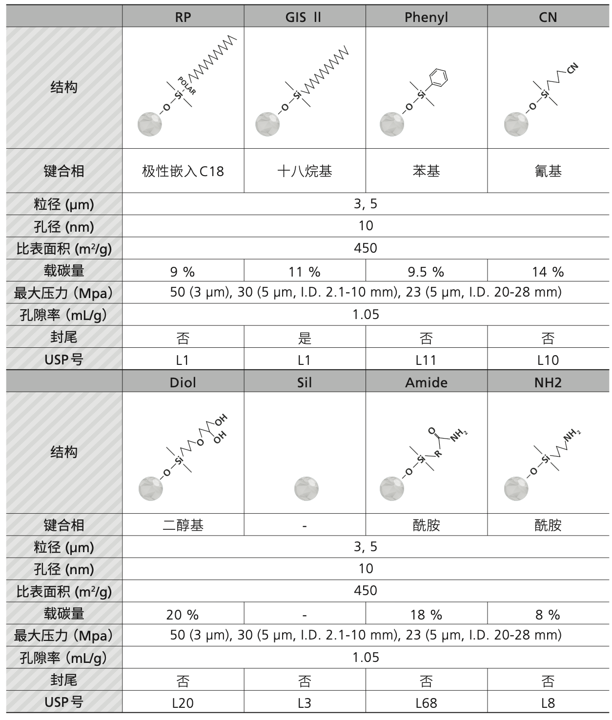 该系列包括二十种填料材料和各种颗粒和柱尺寸,可以根据分析目的进行选择。