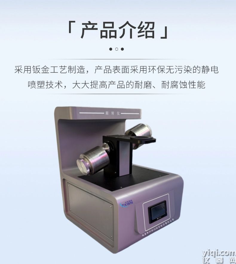 颠转仪外壳采用钣金工艺制造,产品表面采用环保无污染的静电喷塑技术,大大提高产品的耐磨、耐腐蚀性能。该仪器采用步进电机加同步带传动,降低噪音、震动;采用可编程序逻辑控制器(PLC)控制,保证输出转速恒定;通过人机交互界面,直观显示仪器工作进程,从而大大提升企业产品测试效率。