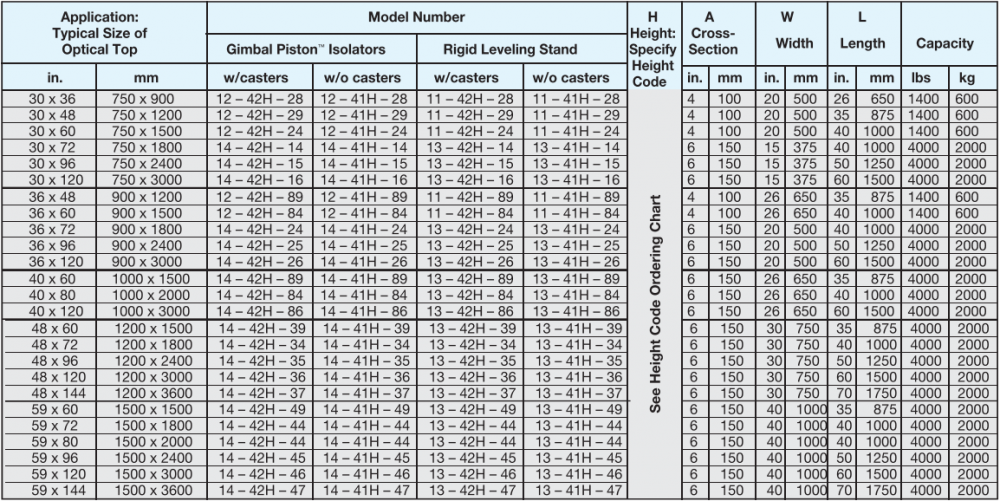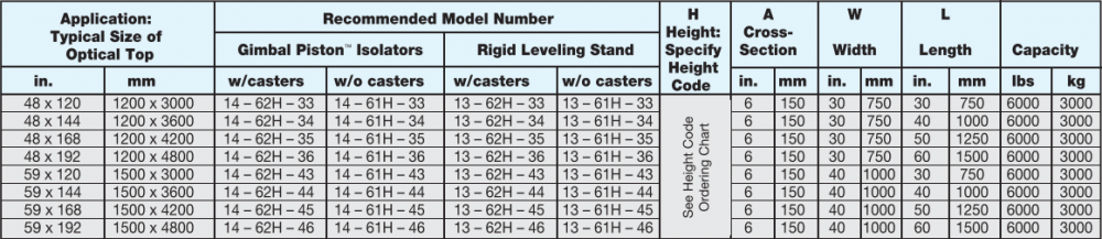 大多数客户选择搭配横梁的四柱系统,但对于那些超过10英尺(3米)的使用场景,我们建议选择6柱系统。6柱系统除了具有较高的承载能力外,附加的支撑点还增强了光学平台的结构特性。