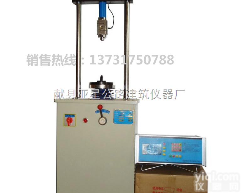 产品简介:LD127-II型产品此主机为二柱支承,其在安装测力环后,可用来测定各种结合料稳定土试件的无侧限抗压强度,间接抗拉强度(劈裂试验),测定土和路面材料的承载比,(含浸水膨胀量的测定)沥青混合料的热稳定性和抗塑性流动的性能,稳定和流值(马歇尔试验),也可进行其它多种需施加垂直载荷的试验,在断电时或无电源的情况下可用手动操作。LD127-II型产品操作:1、接通电源后,检查电机转项。(可调电源接头,使之相复)2、操作过程中,检查手柄位置是否正确。3、不可在电机工作中变换升降速度,以免将变速箱中齿轮损坏。4、严禁超负荷使用,以避免损坏齿轮箱与仪器结构件。保养:1、每使用6个月(基本连续使用)应清洗变速箱中且更换黄油。2、每日工作完后要擦净仪器,避免因湿因脏引起仪器生锈,或卡死活动部位。 沧州华恒试验仪器有限公司主营:公路试验仪器,教学用实验仪器,混凝土试验仪...