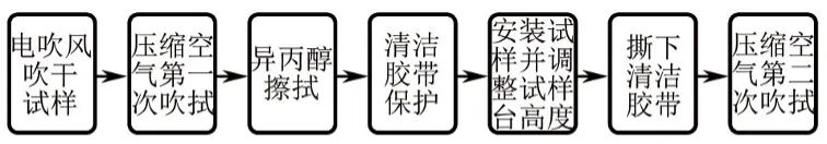 4)清洁胶带保护:检测面清洁完成后,将清洁胶带覆盖在检测面上,一是避免在安装试样调节试样台高度的过程中对检测面造成人为损坏污染,二是可利用清洁胶带对检测面进行二次清洁。