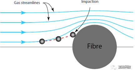 拦截机制是颗粒在运动的过程中,由于纤维的阻挡会使气流偏移,而当颗粒中心之间的距离小于纤维直径与颗粒的半径之和,因此颗粒有较大概率会被纤维截留。对于较大的颗粒,拦截作用是主要的收集机制。