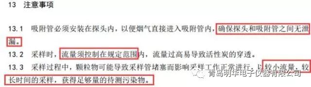 新标准解读八:标准在注意事项中明确指出,吸附管和探头之间应保证良好的密封性,流量控制应在规定范围内,并且应用较小流量较长时间进行采样。