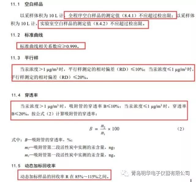 新标准解读七:为保证检测质量,标准对现场和实验室空白样品检出限、标准曲线相关系数、平行样相对偏差、穿透率、加标回收率进行了详细说明并作出明确规定;