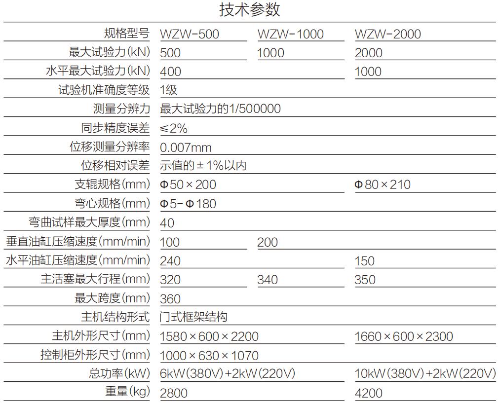 四、三思纵横WZW系列三缸弯曲试验机的技术参数