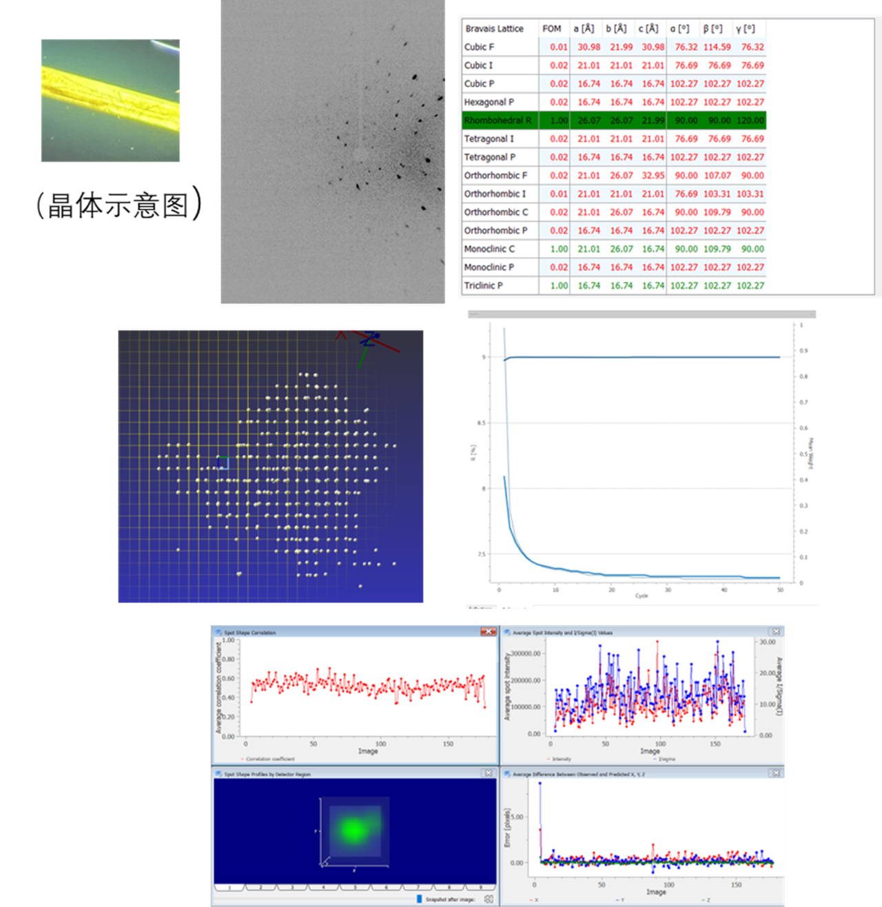 我自信地认为,这个晶体的测试也就是分分钟的事情。晶体很大,六棱柱的样子,但黯淡地发着淡黄色的光芒(晶体照片已不幸遗失)。有些想吐槽:实在不理解,为什么要让晶体干掉。但晶体的衍射能力还在,只是衍射点弥散的厉害,推测应该是失去溶剂后的晶格堆积扭曲,亦或是晶体本身就是这德性。衍射图案只是反映了当前的晶体的状况,但无从考究根本原因。一个厨师的原则是,有什么食材就只能做什么菜。然而这个看似简单的晶体着实把我拖住了。除了衍射点形状较差,其它都看起来非常正常。晶体表观上Rhombohedral R的晶系。数据还原,校正,空间群分析都没有什么太大的毛病。然而结构解析始终得不到有效的相位。