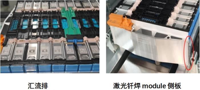 电芯组成模块焊接主要是汇流排焊接以及侧板焊接等: