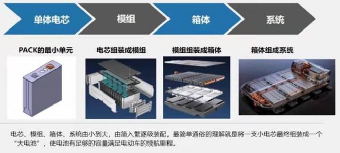 这三种电池目前都用于电动汽车的生产中,其中棱柱形电池和圆柱形电池应用比较广泛。不同形状的动力电池具有不同的焊接工艺参数。电池从电芯到成型示意图如下,焊接是这个过程中非常重要以及复杂的工艺。